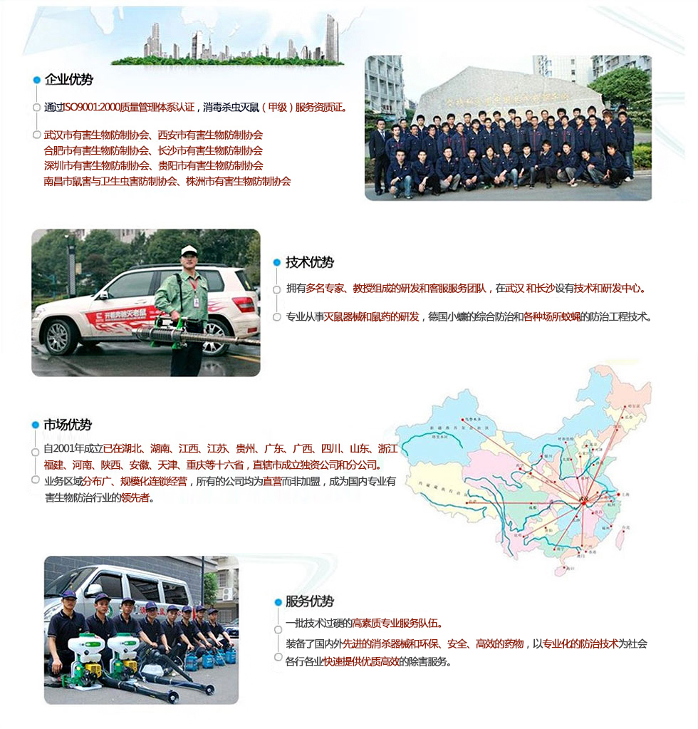 我們堅(jiān)持“誠信、高效、安全、環(huán)保”的服務(wù)宗旨,所用器械均為世界優(yōu)質(zhì)產(chǎn)品,所用藥物均系國家藥檢部門和衛(wèi)生防疫部門批準(zhǔn)的安全、低毒的城市衛(wèi)生用藥,并根據(jù)具體作業(yè)環(huán)境和防治對(duì)象情況變化,制定具體防制方案,保證優(yōu)越的防治效果和人體安全。